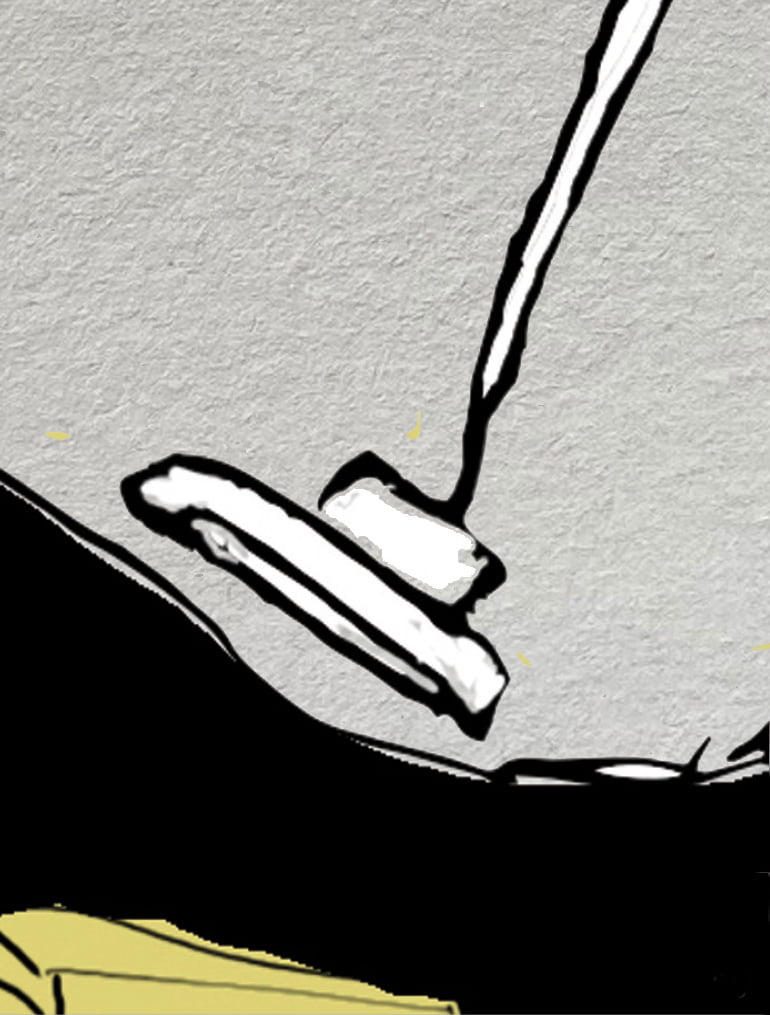 Hij rent naar de achterkant van het huis, De deur staat half open. Arold duwt. De deur klemt, hij zet zijn schouders er tegenaan. Achter de deur ligt Breur in zijn eigen bloed.