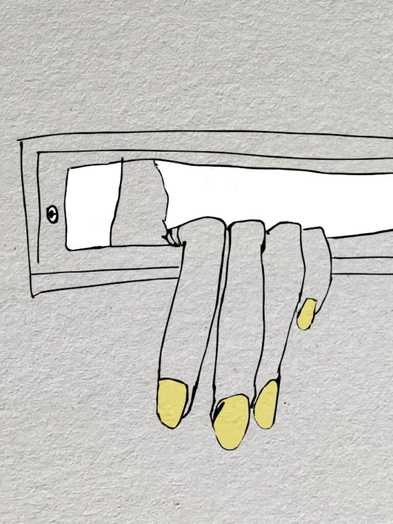 Ze kende mijn naam. Dat maakte me nieuwsgierig. Ik liep terug en opende de deur voor de tweede keer. Daar zat ze, op haar knieën op de kokosmat, haar hand nog aan de klep van de brievenbus. Ze keek naar me op.