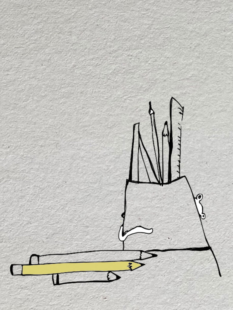 Ze zocht de kleurpotloden bij elkaar.